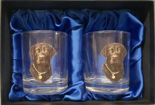 Pair American DOF (Double Old Fashioned) glasses with Black Labrador image