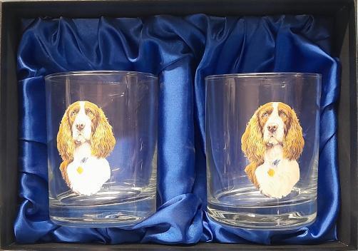 Pair American DOF's glasses with Spaniel image 12oz Glass In a presentation box Hand was only