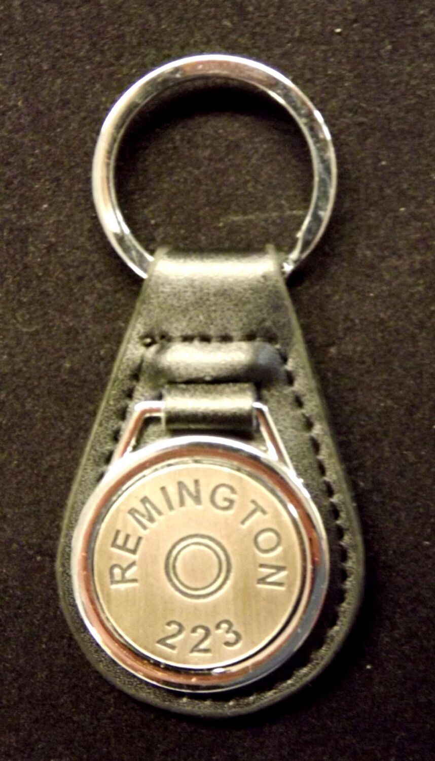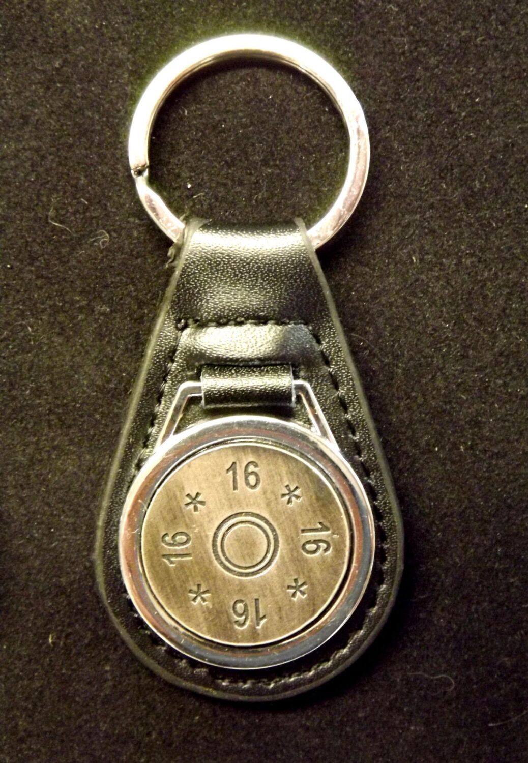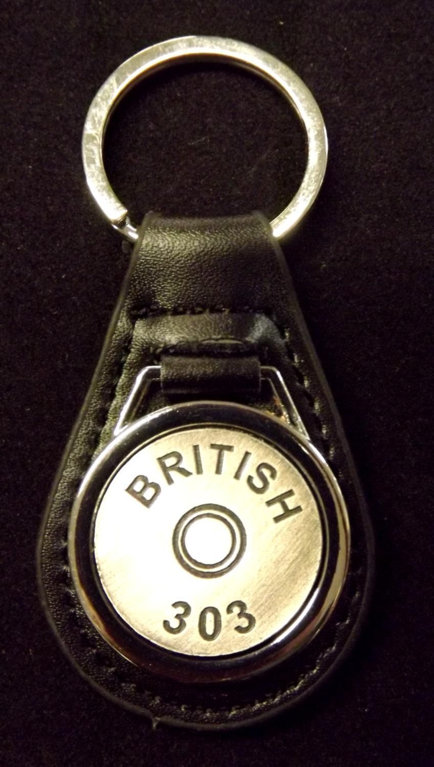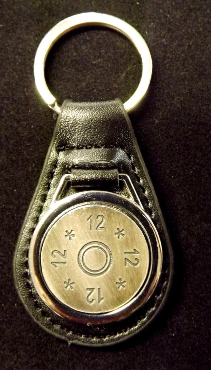 Antiqued Silver plated representation of a head stamp on a leather key fob