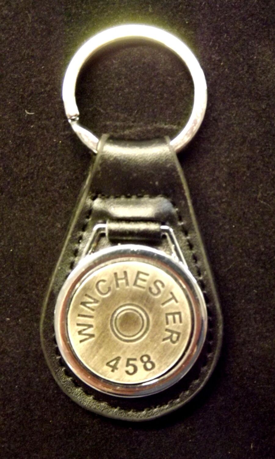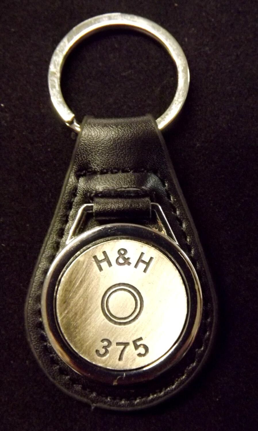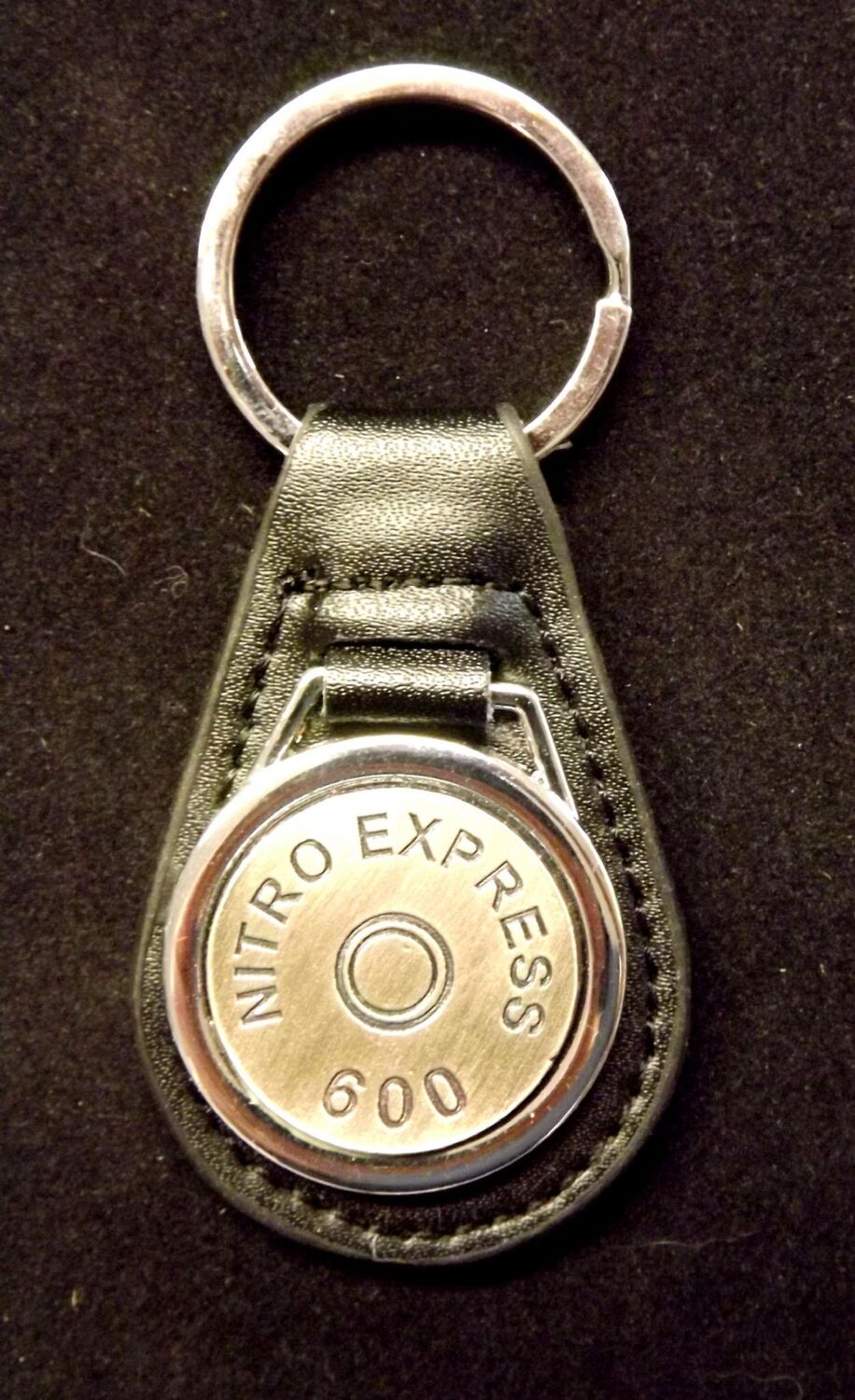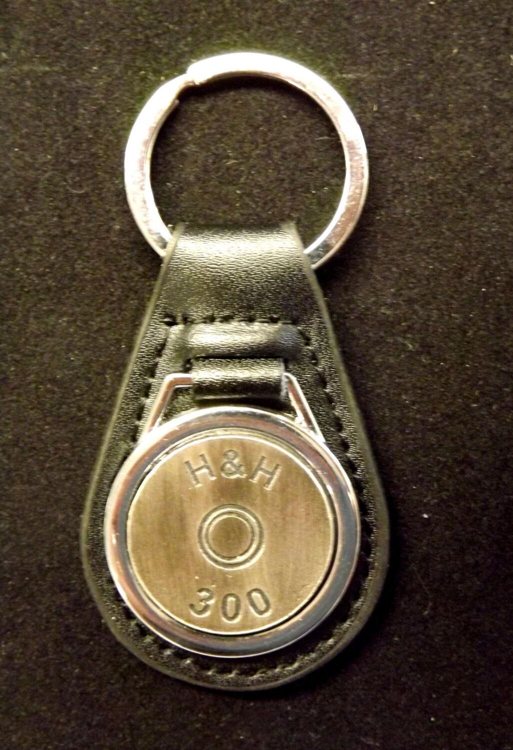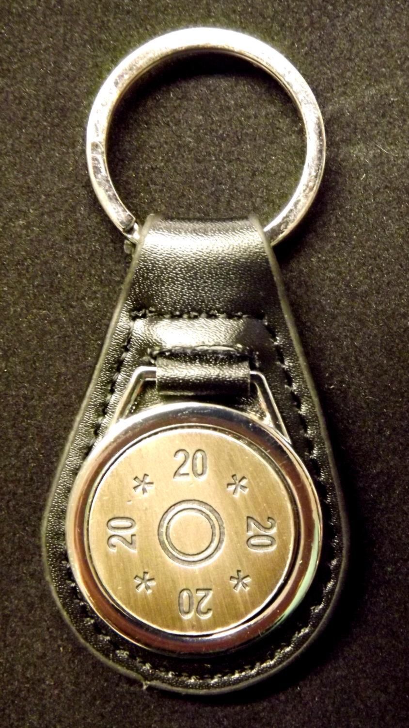 Antiqued Silver plated representation of a head stamp on a leather key fob
