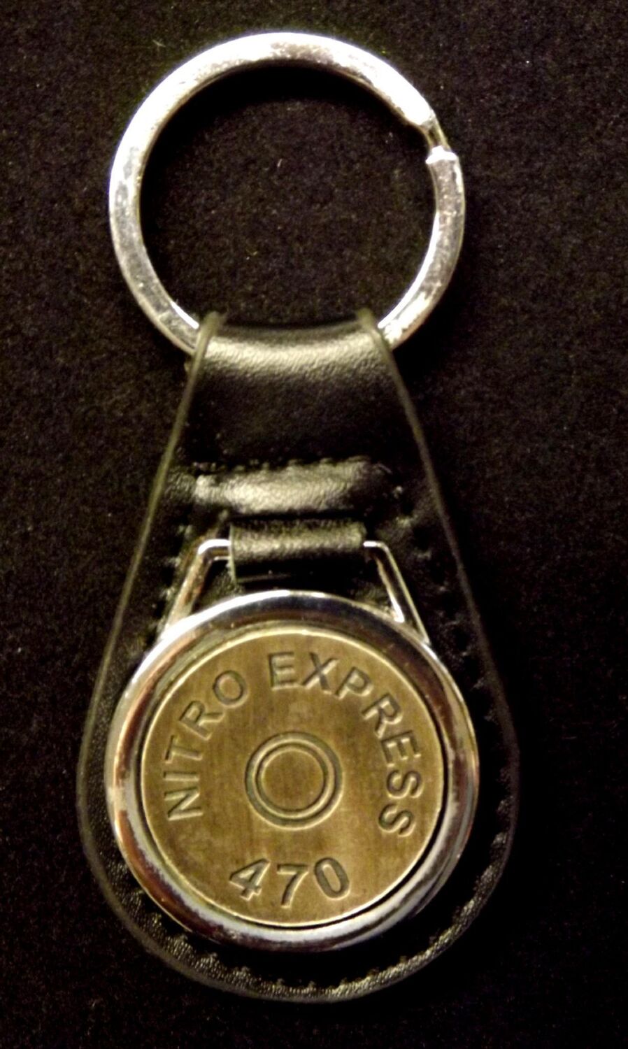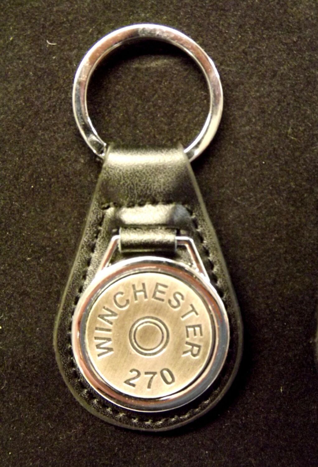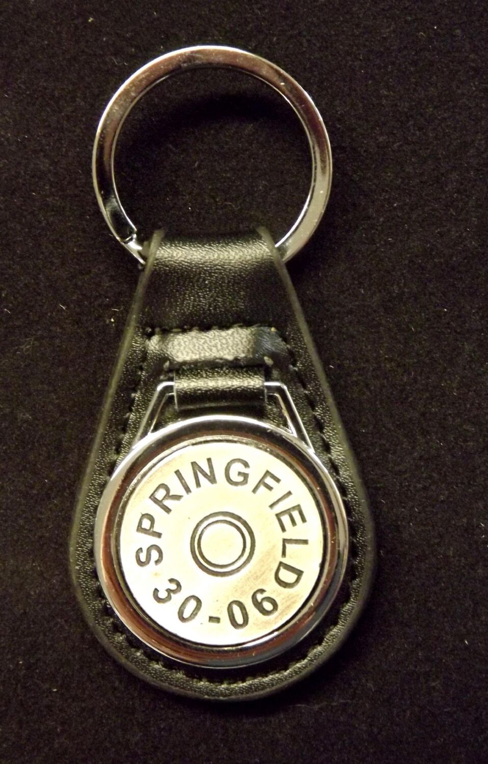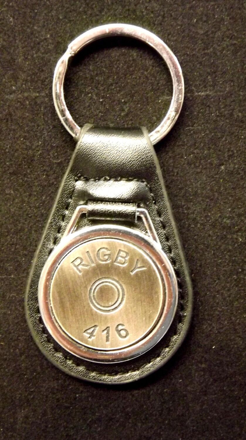 Antiqued Silver plated representation of a head stamp on a leather key fob