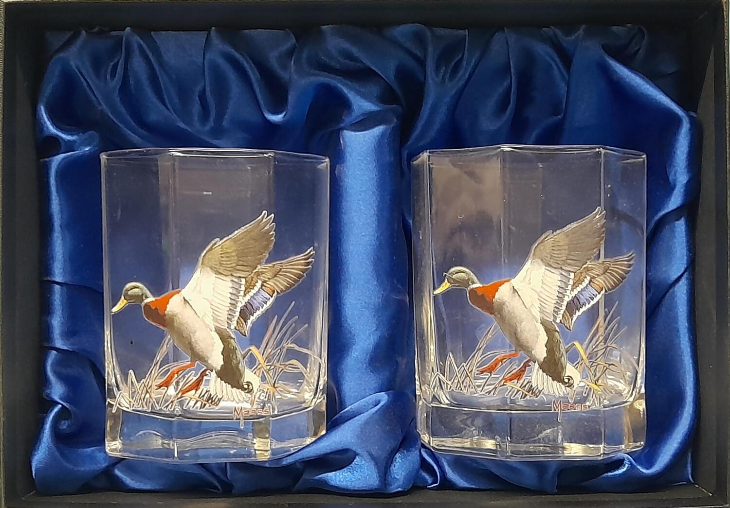 Pair American DOF's glasses with mallard image 12oz Glass In a presentation box Hand was only