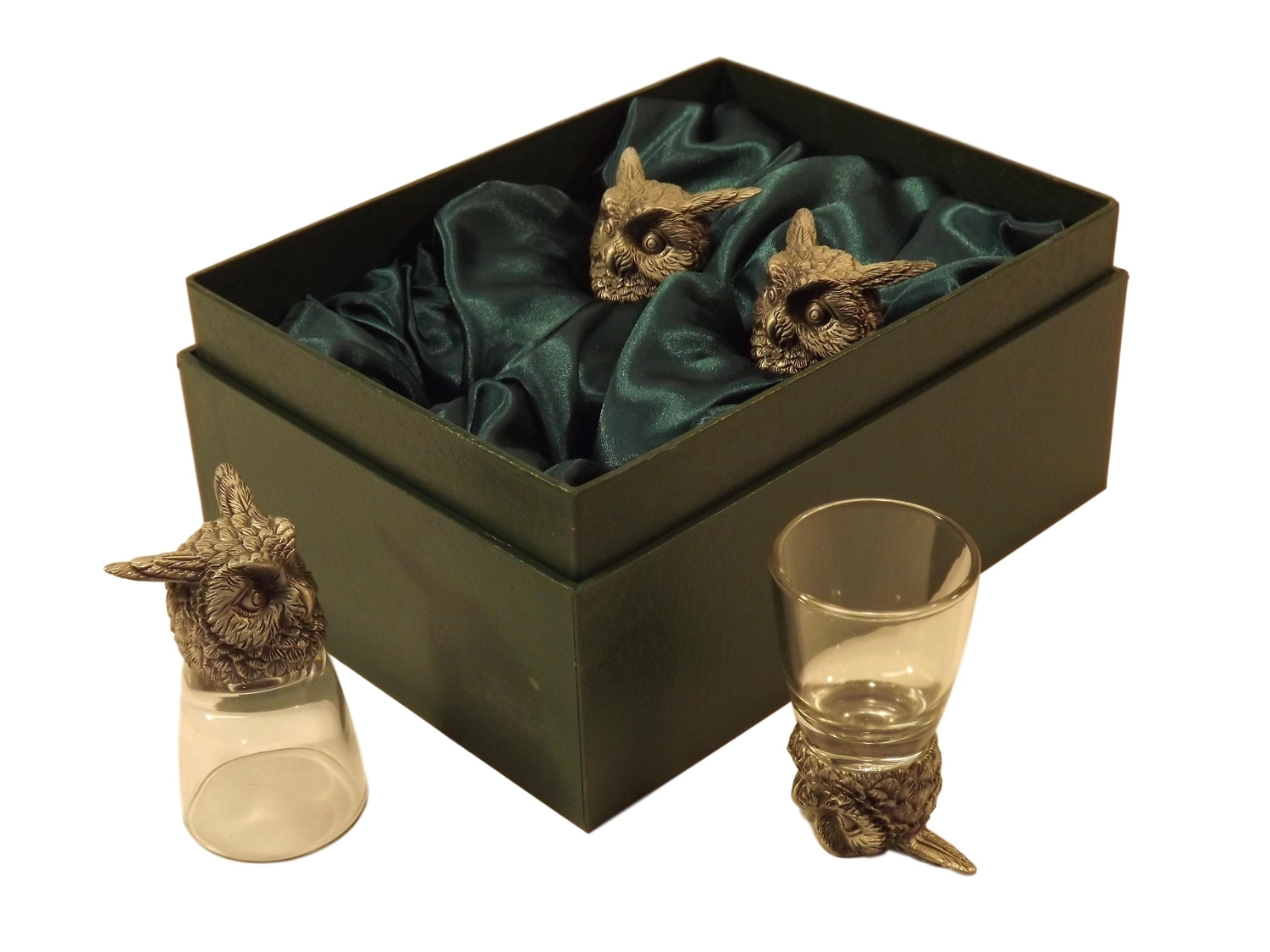 SET OF 4 OWL SHOT GLASSES IN A PRESENTATION BOX