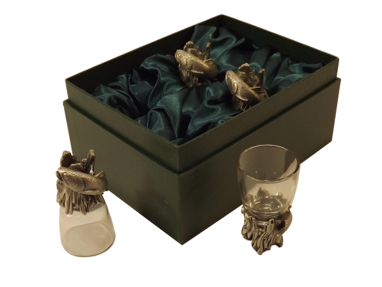 SET OF 4 TROUT SHOT GLASSES IN A PRESENTATION BOX