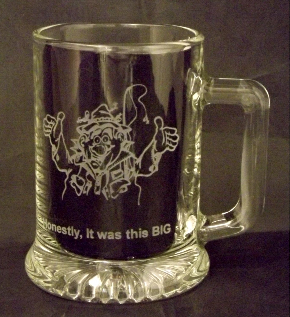 Engraved "Honestly, it was this BIG" fishing image on Small 0.29 ltr tankard.