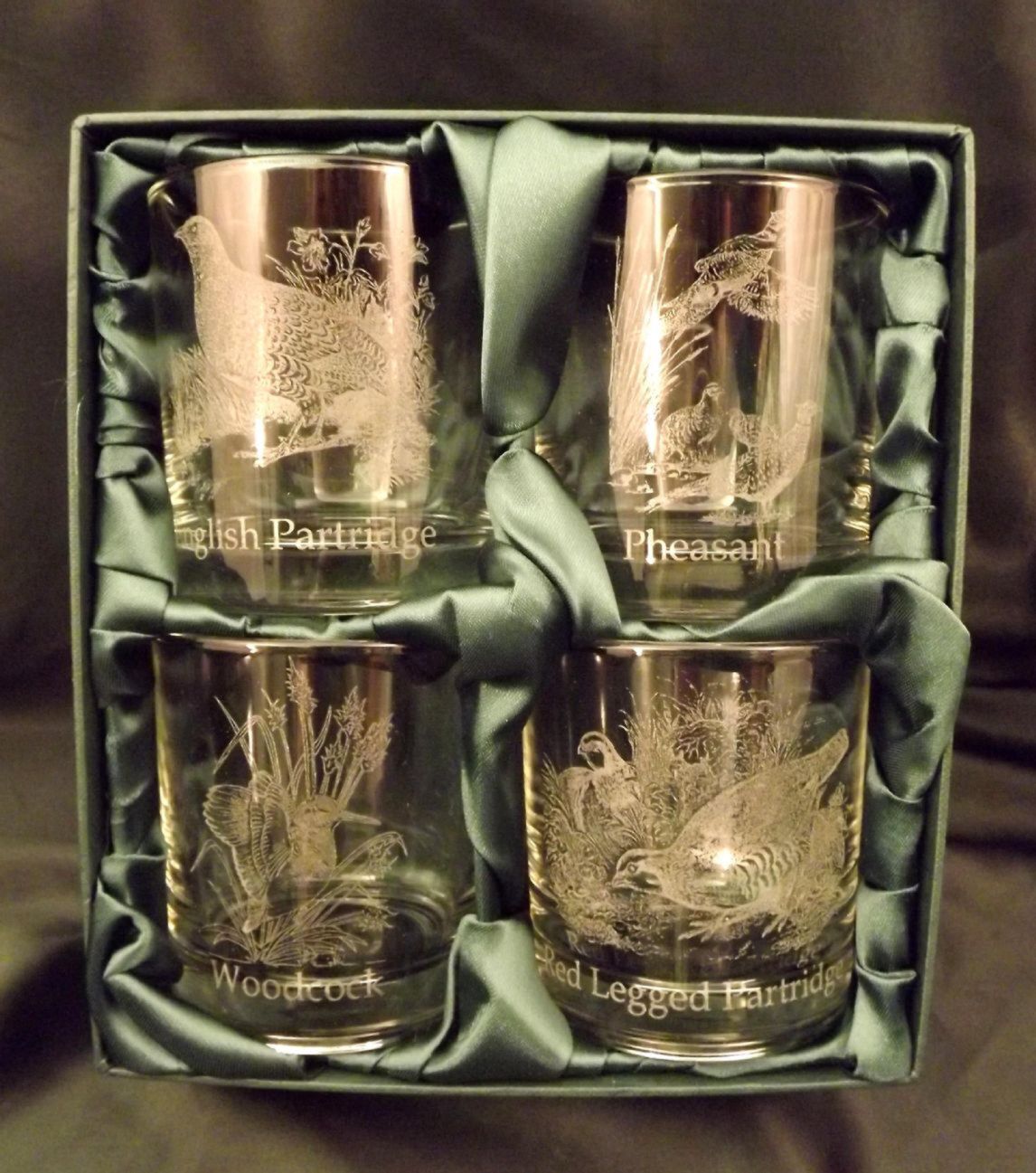 UK Game Engraved Whisky Glasses x 4
