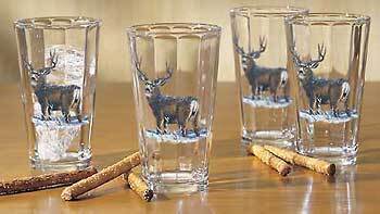 Set of four 16 oz. mixers from the Great Northern Art collection. Features a ribbed glass style. Hand washing recommended.