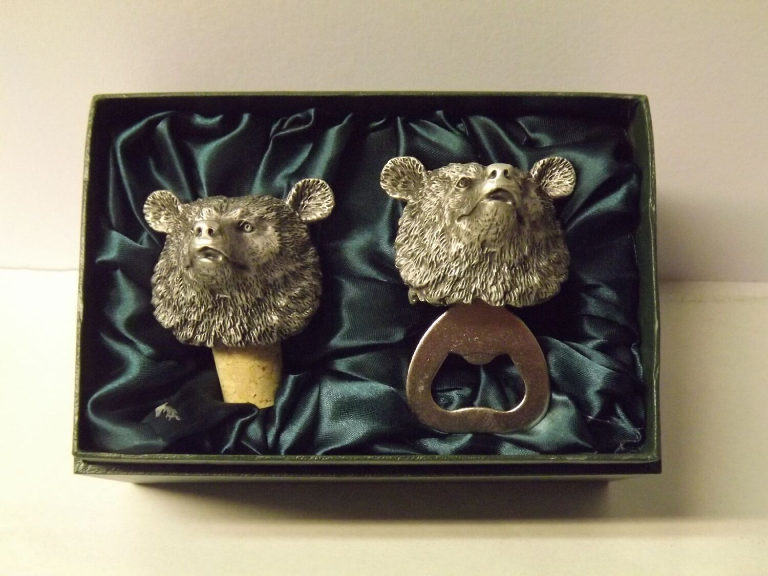 Beautiful white metal and nickel plated Bear head bottle combo set.