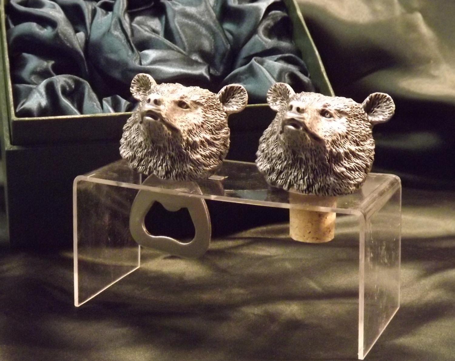 Beautiful white metal and nickel plated Bear head bottle combo sets.