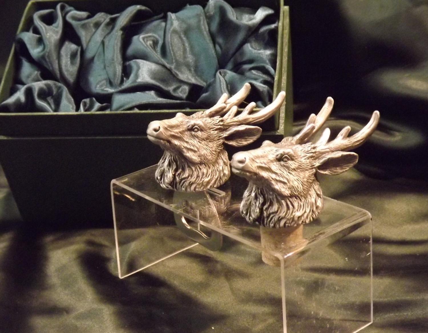 Beautiful white metal and nickel plated Deer head bottle combo sets.