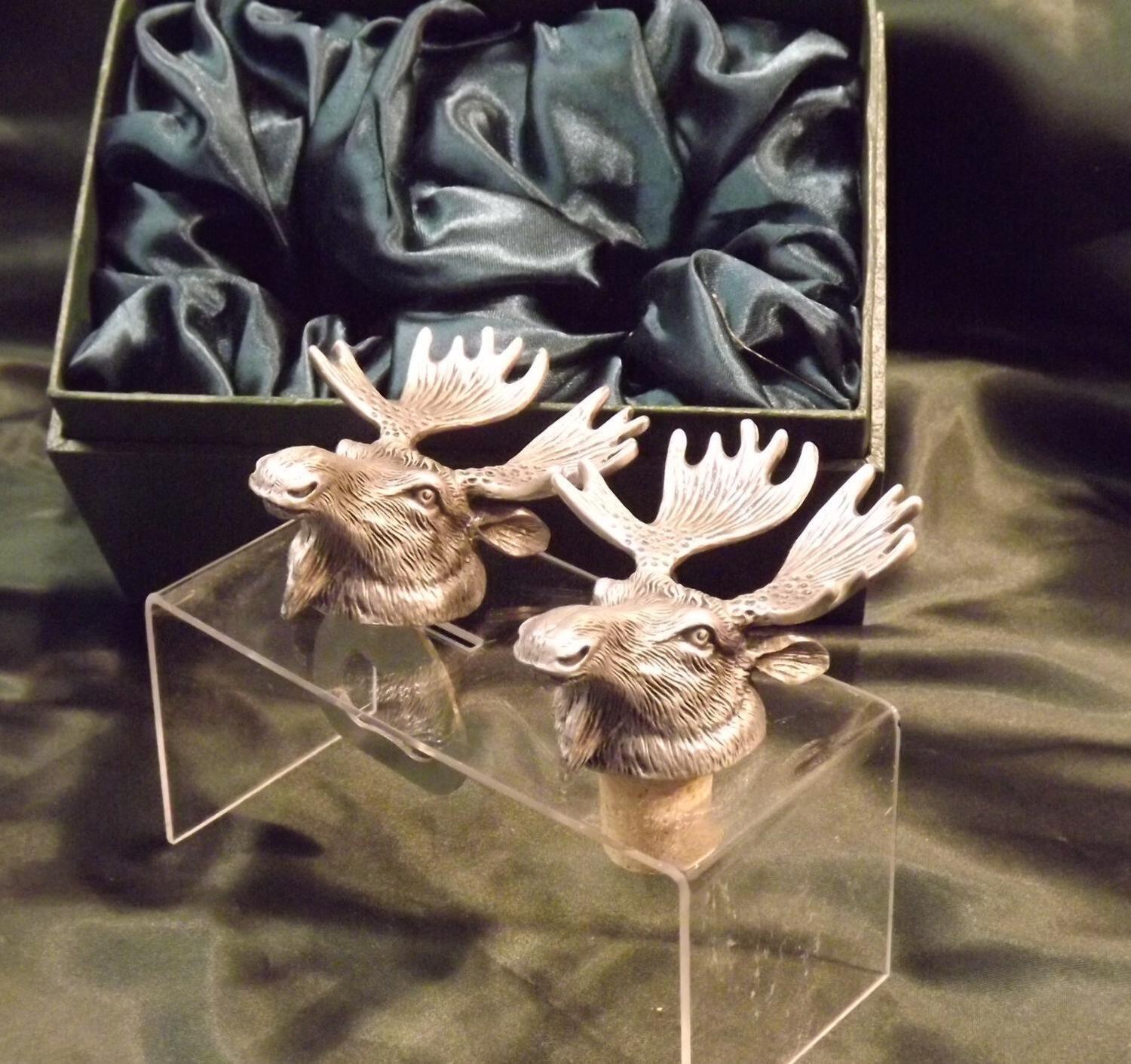 Beautiful white metal and nickel plated Moose head bottle combo sets.