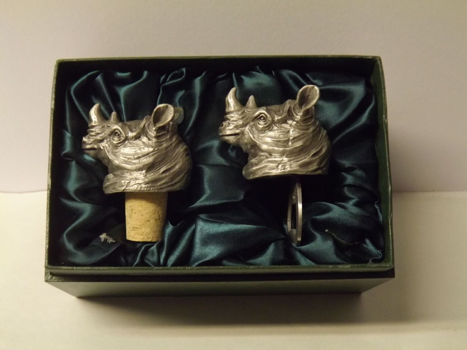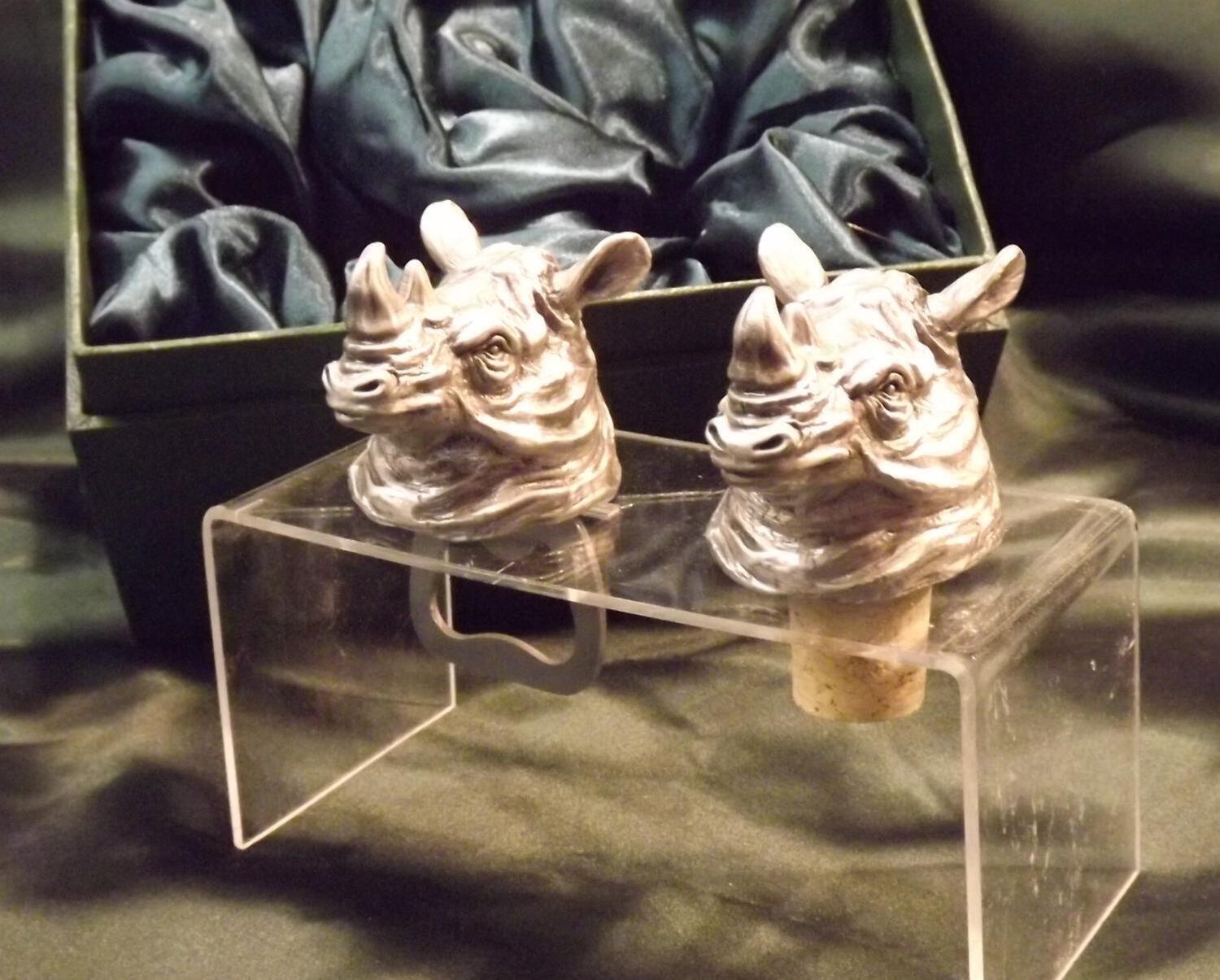 Beautiful white metal and nickel plated Rhinoceros head bottle combo sets.
