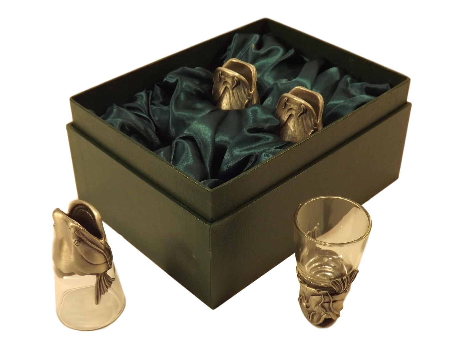 SET OF 4 CATFISH HEAD SHOT GLASSES IN A PRESENTATION BOX
