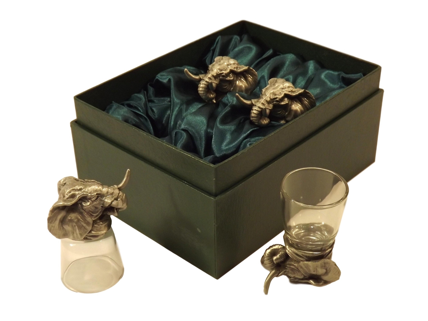 SET OF 4 ELEPHANT SHOT GLASSES IN A PRESENTATION BOX