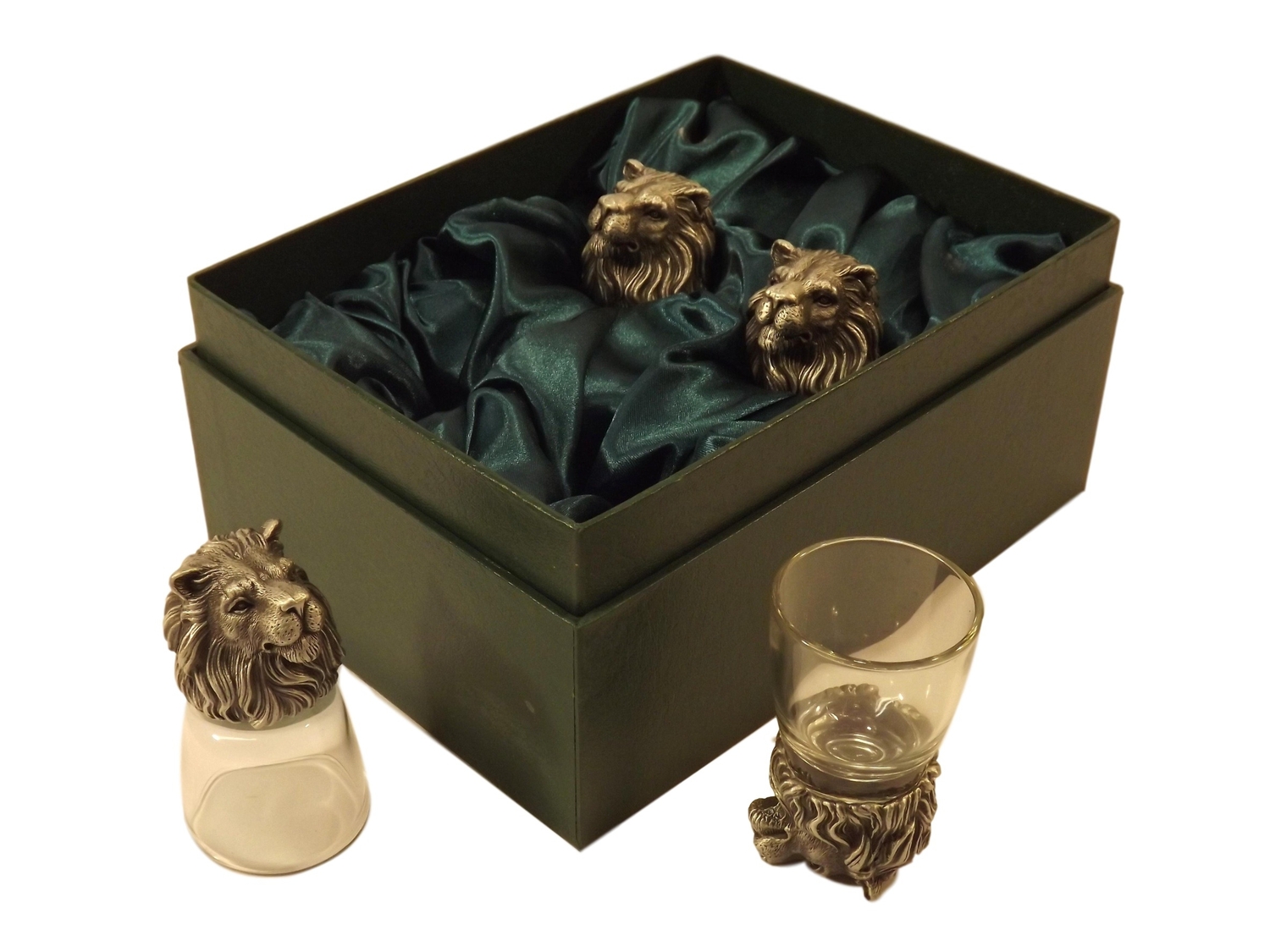 SET OF 4 LION SHOT GLASSES IN A PRESENTATION BOX
