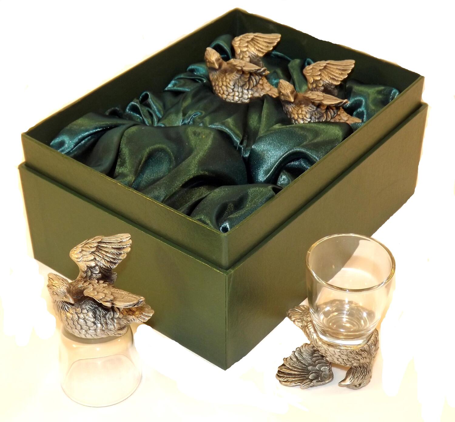 SET OF 4 QUAIL SHOT GLASSES IN A PRESENTATION BOX