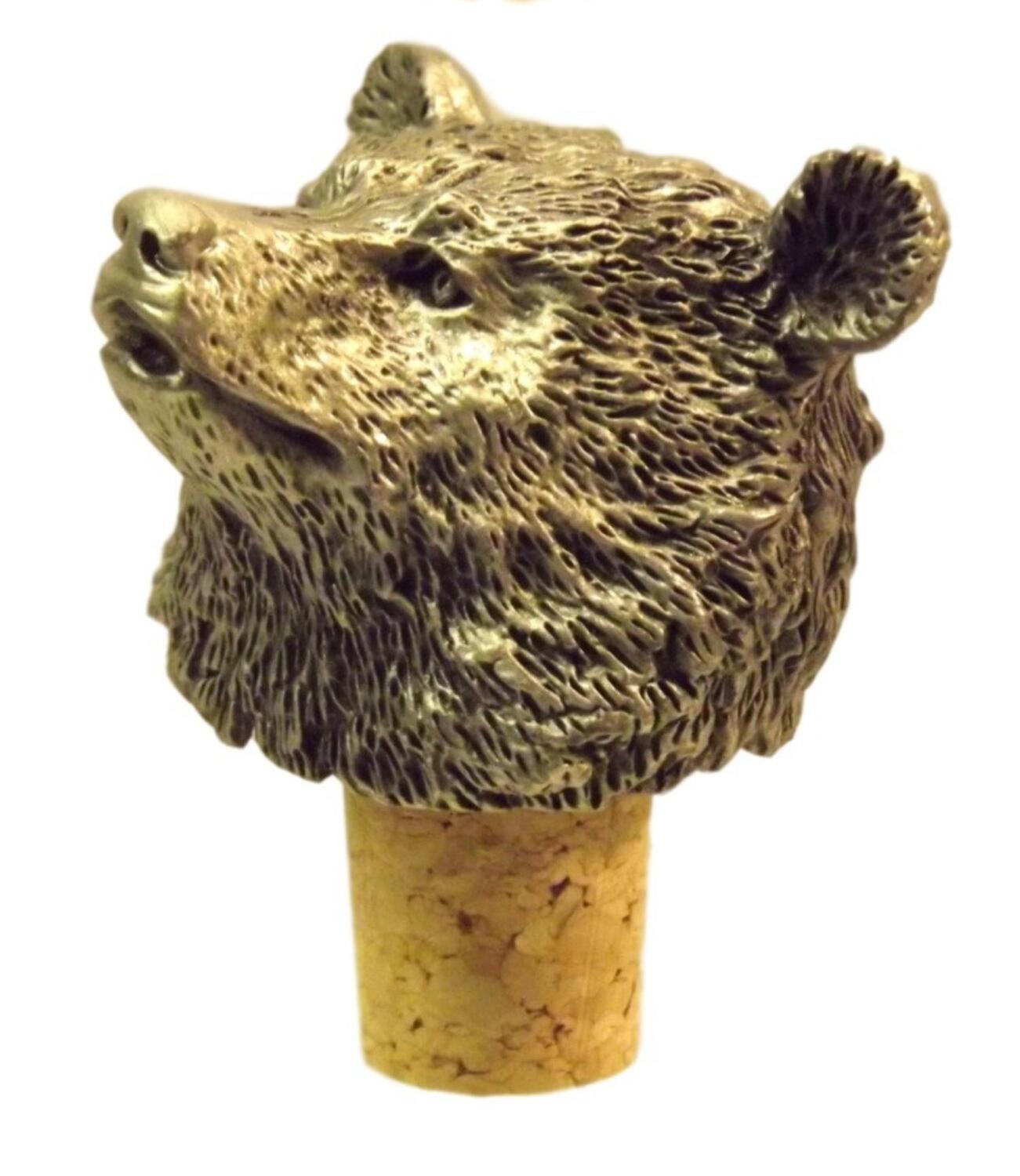 Single Antiqued Bear Head Bottle Stopper