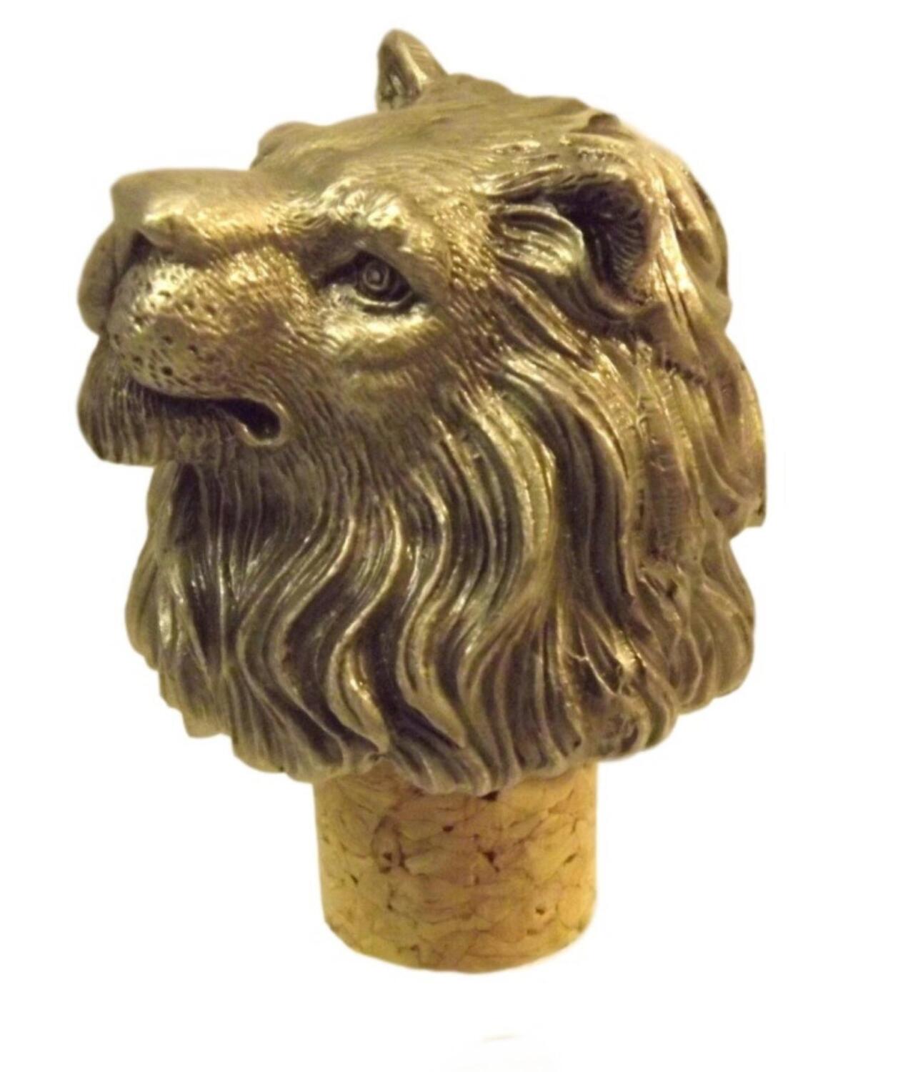 Single Antiqued Lion Head Bottle Stopper