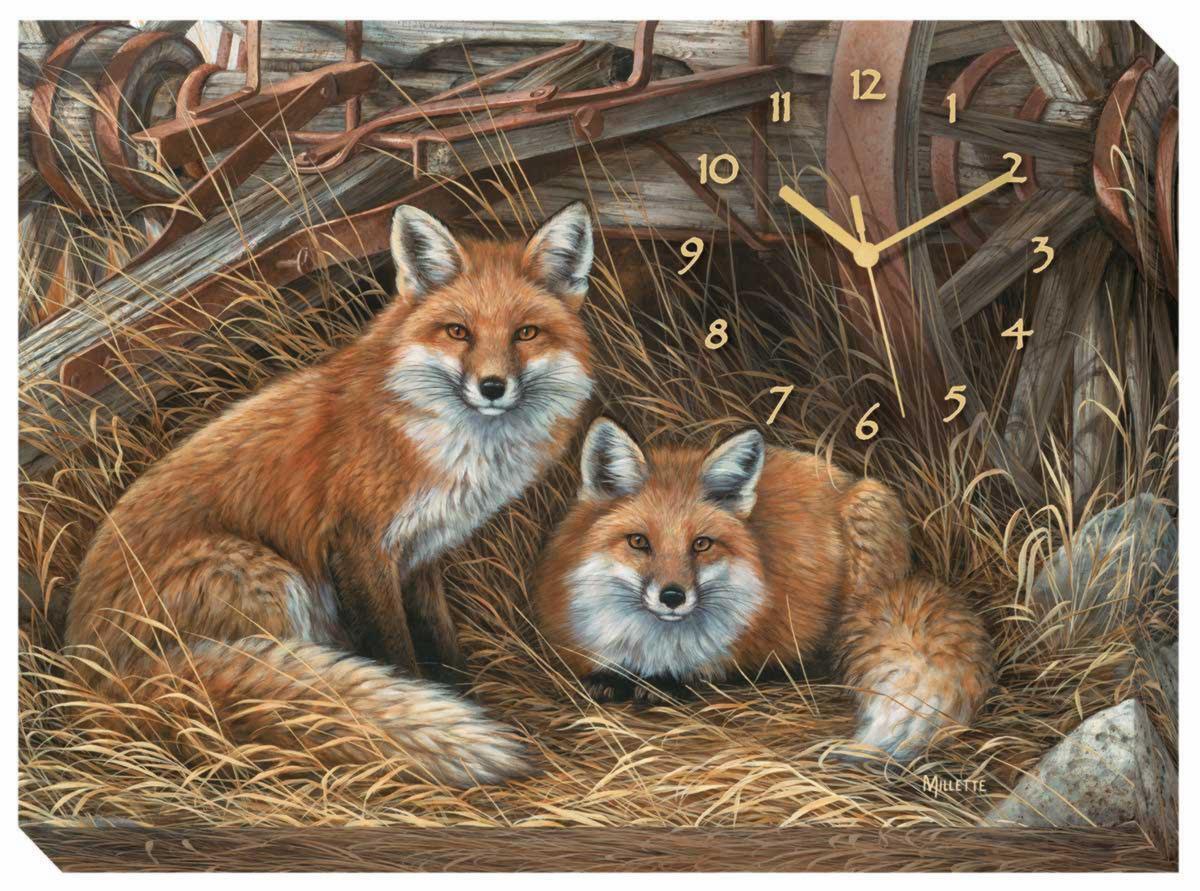 Wrapped canvas art and a functional clock in one. Decorative hands complement the image. Precision quartz movement. AA battery required (not included). Produced exclusively by Wild Wings. 18"H x 13"W x 1-1/4"D.
