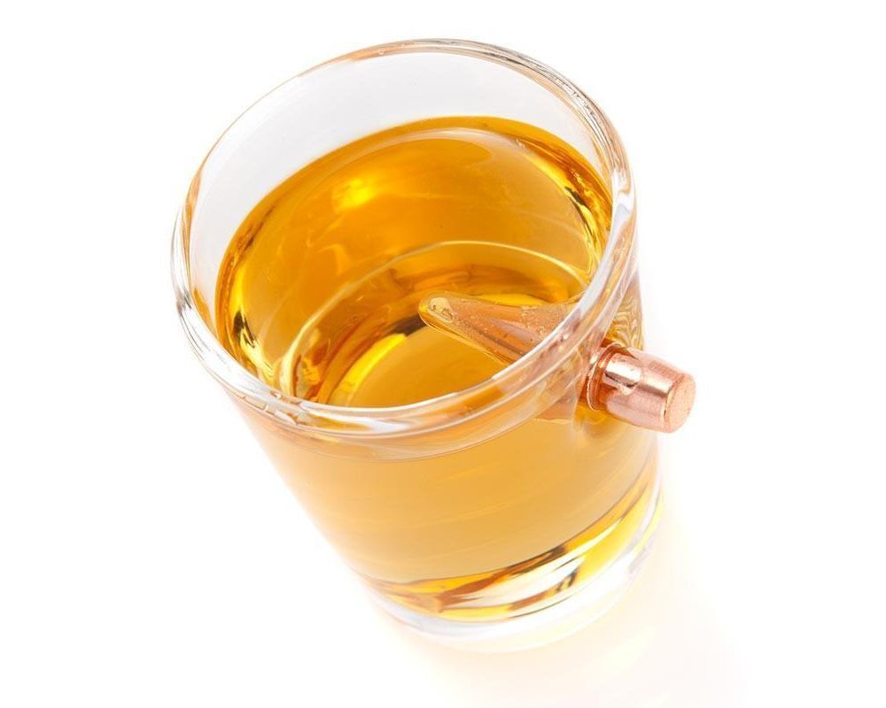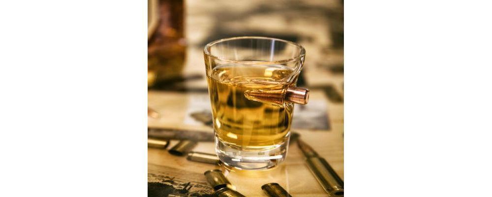 Shot/ Tot Glass with 7.62/ 308 calibre head embedded into the side