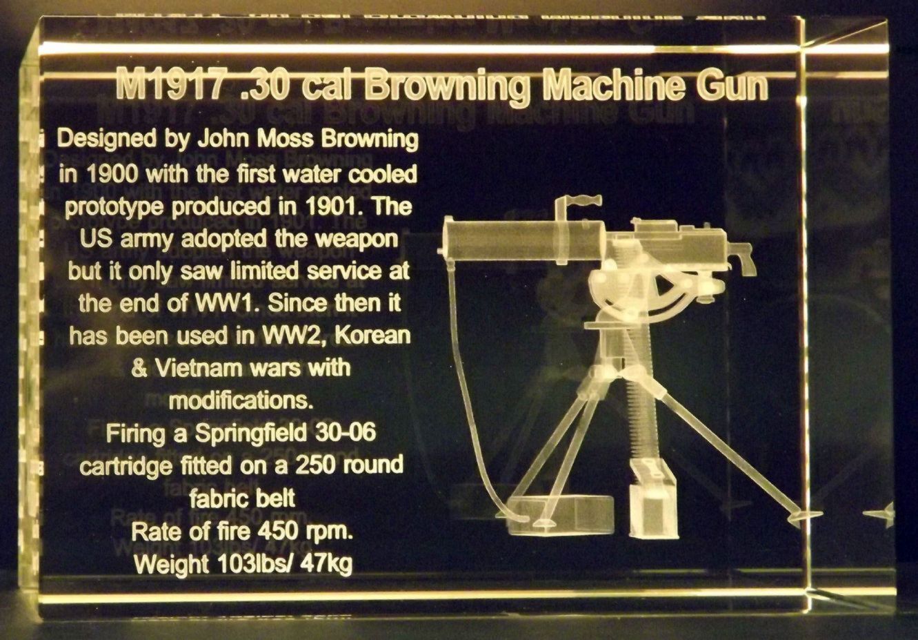Crystal Block containing 3D image of Browning M1917 light machine gun