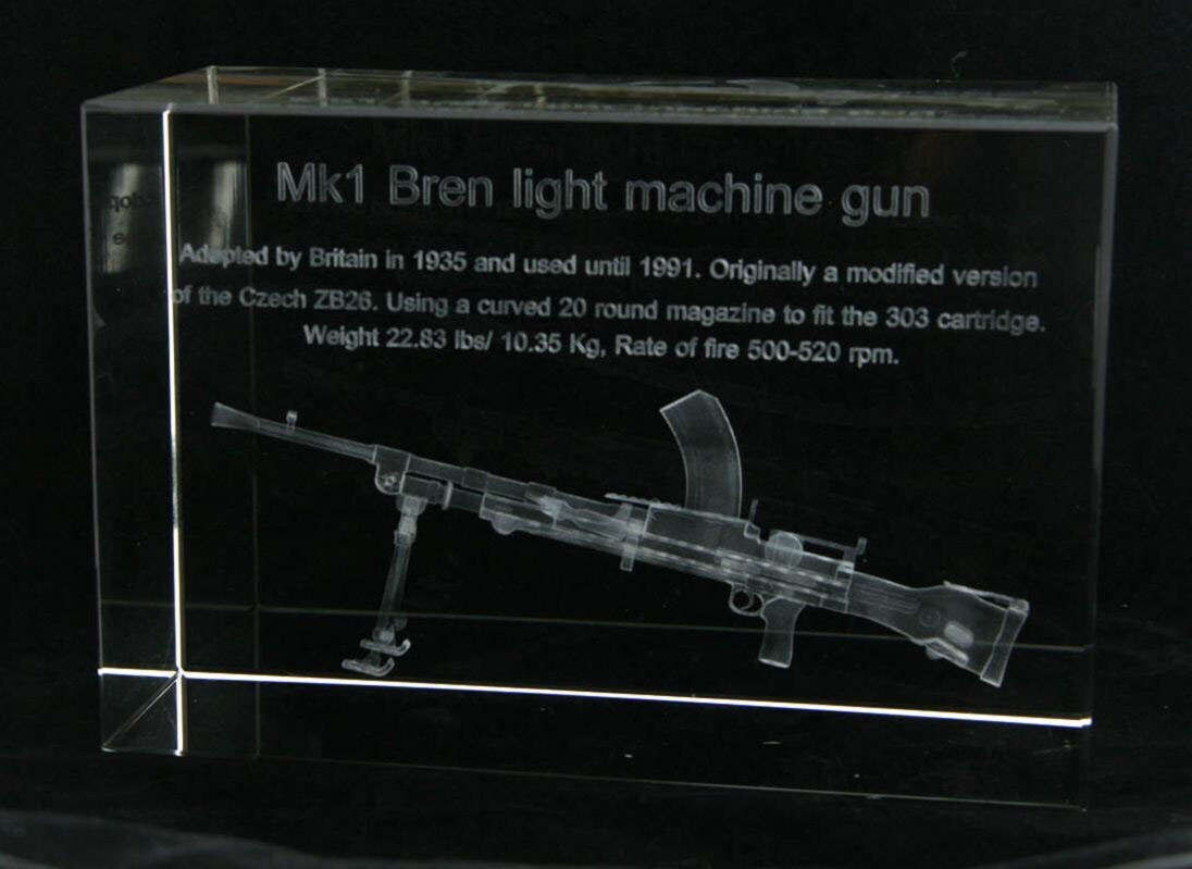 Crystal Block containing 3D image of Mark 1 Bren Gun light machine gun