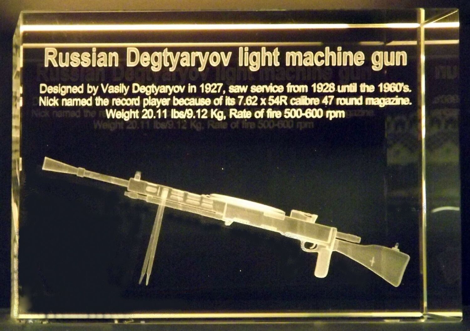 Crystal Block containing 3D image of Russian Degtyaryov light machine gun