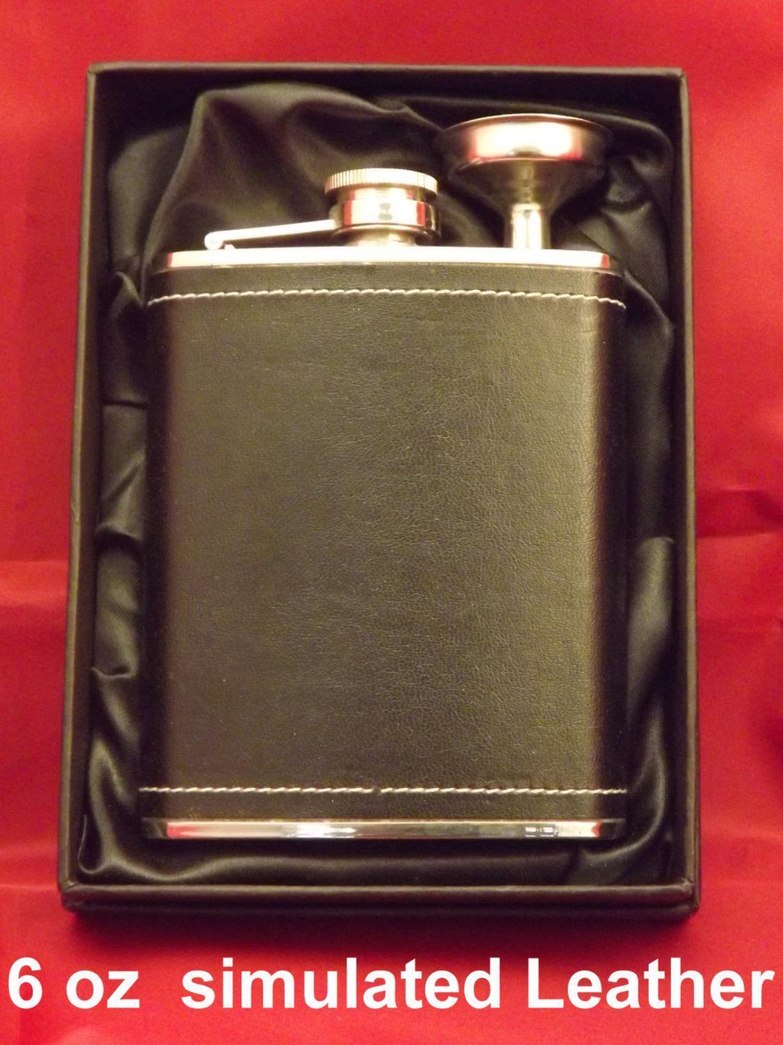 6oz Simulated Leather Finish Hip Flask, boxed with funnel