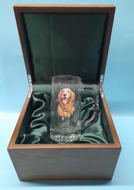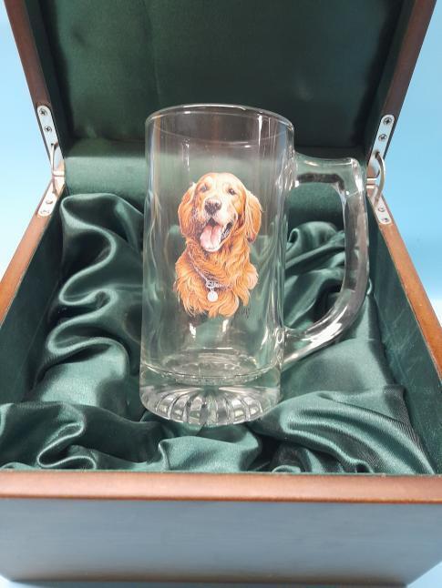 American Stein glass with Golden Retriever image