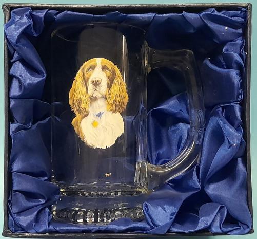 American Stein glass with Spaniel image