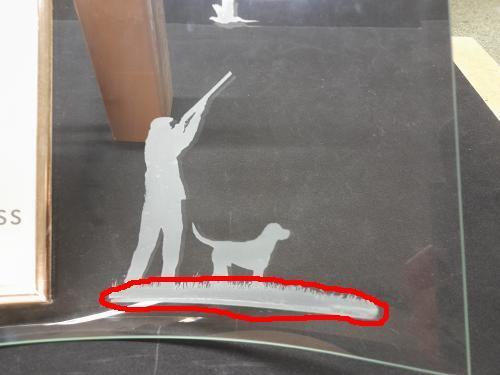 Engraved curved picture frame with image of a shooting man with pheasants.