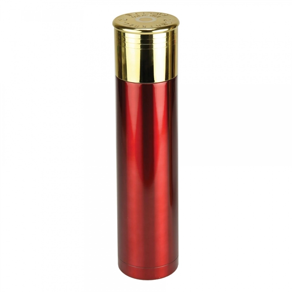 Keep your beverage of choice warm or cool with this great looking Vacuum Insulated Bottle that looks just like a real shotgun shell. 1 liter (34oz) capacity with screw on drinking cup on top and no spill push button pour top. Double wall stainless steel construction.In attractive display box packaging.