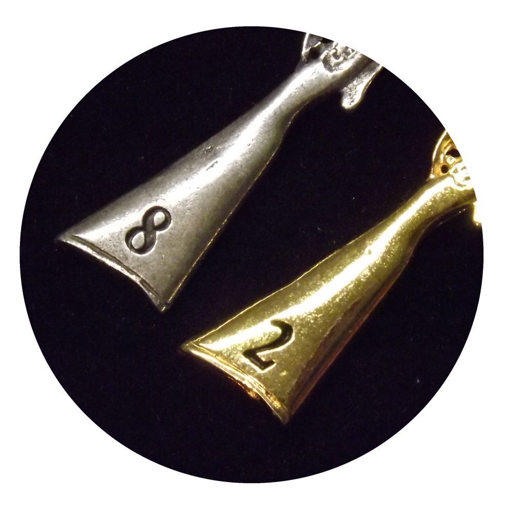 Cartridge shaped stainless steel and brass holder with 12 x gold plated SBS miniature gun peg finders,