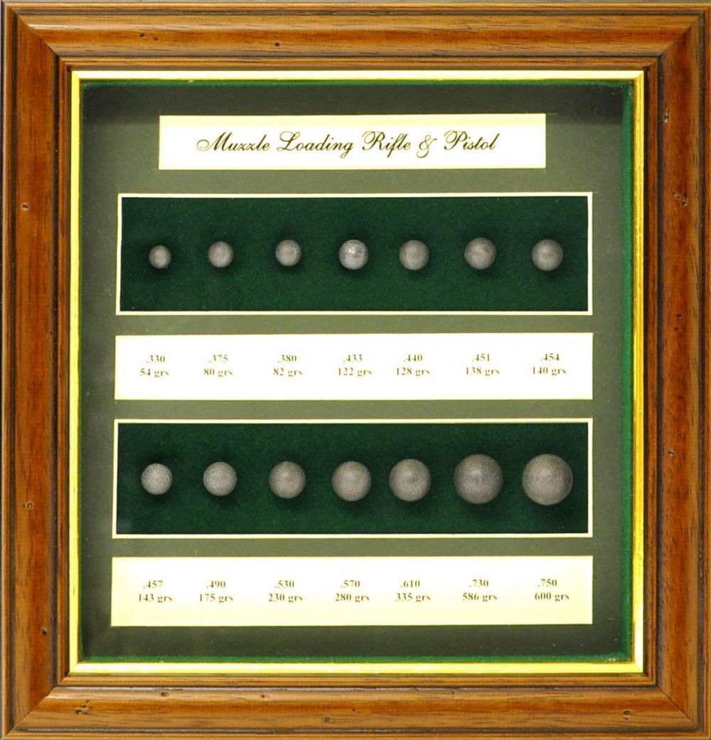 Small display containg a range of muzzle loading shot/ balls of various calibres.
