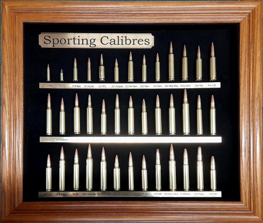 Line 1 :- .17 HMR, .22LR, .218 Bee, .22 Hornet, .22 PPC, .221 Fireball, 22-250, .222 Rem, .223 Rem, .240 Wby Mag, 6mm Rem, .243 Win, 6.5 x 55
