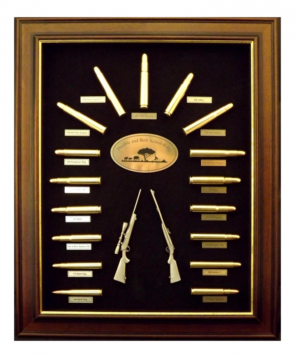 Display containing rounds used in either Double or Bolt action rifles in Africa.