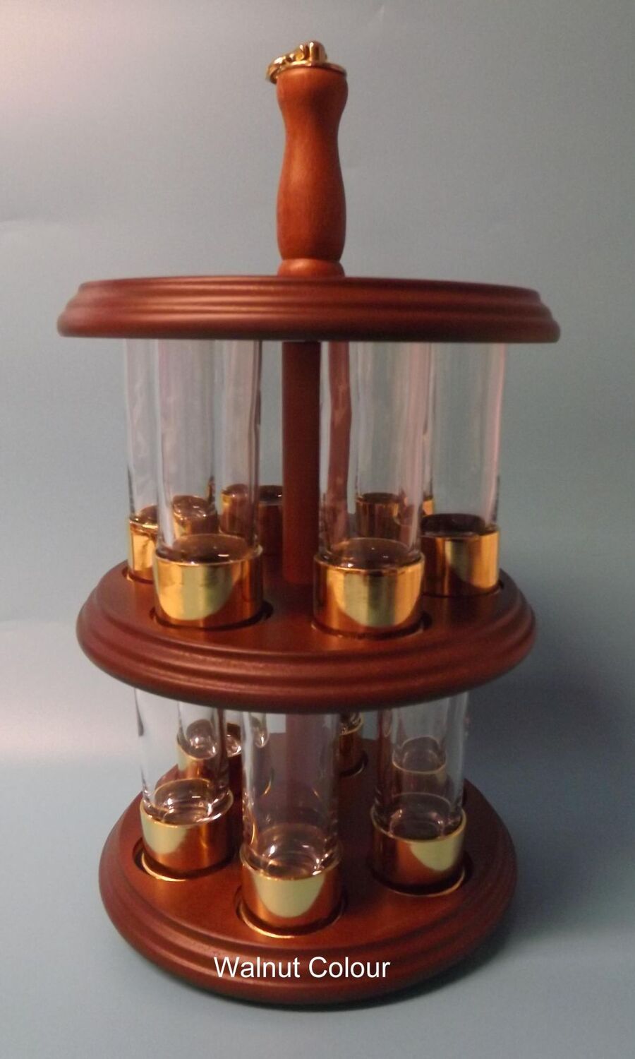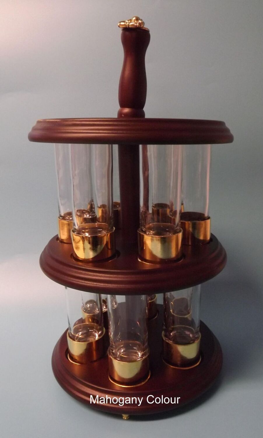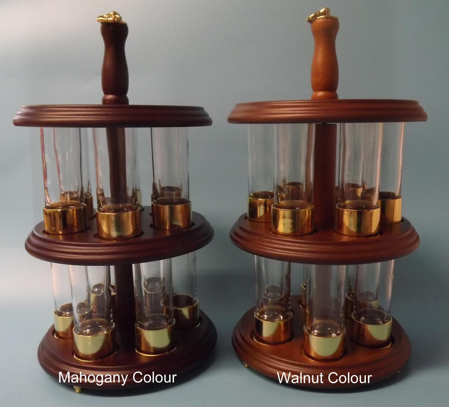 These glasses are very eligant and a little different from our stand range of shot glasses. Each carry a 6oz glass and all types of glasses are available in a set of 12 in either a walnut or mahogany coloured carrying stand.