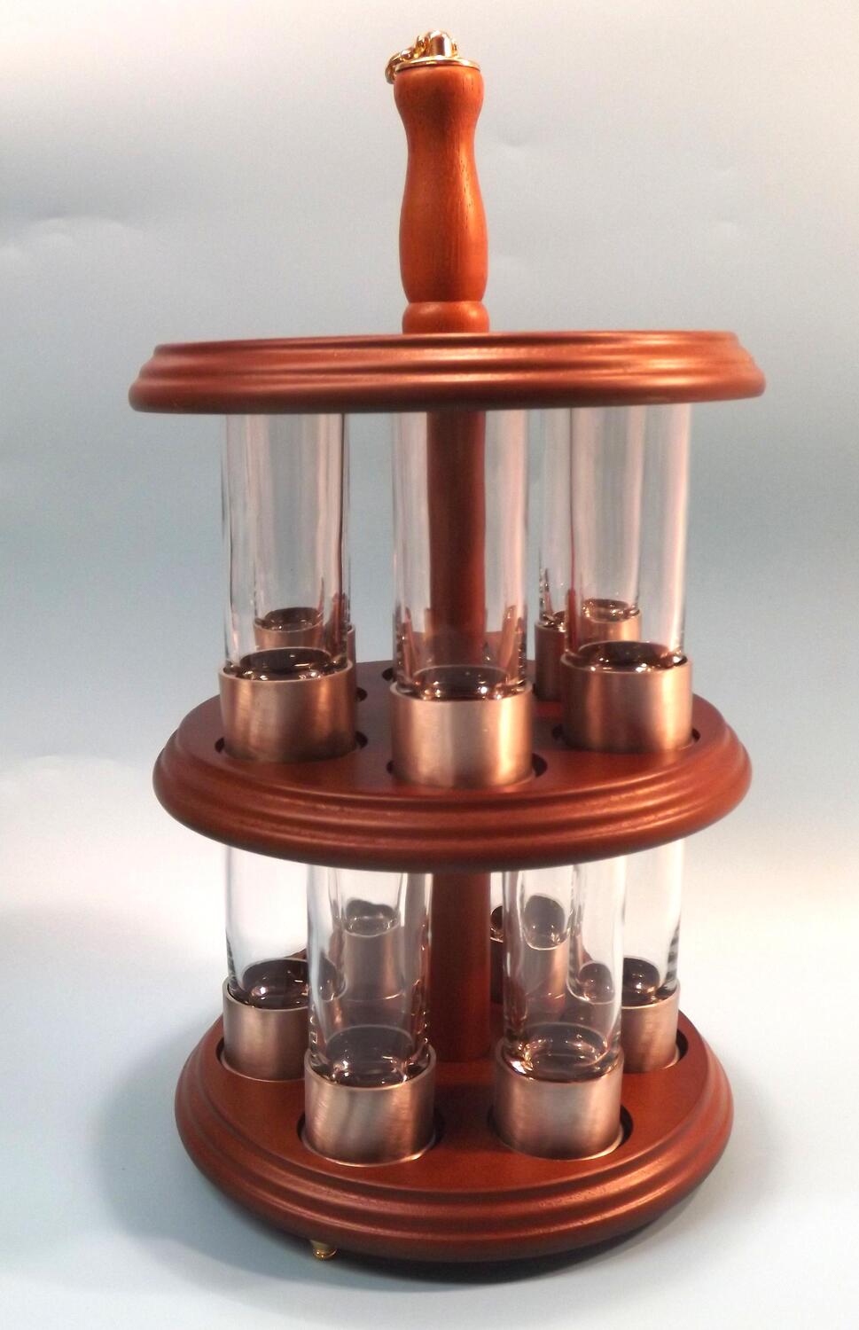 These glasses are very eligant and a little different from our stand range of shot glasses. Each carry a 6oz glass and all types of glasses are available in a set of 12 in either a walnut or mahogany coloured carrying stand.