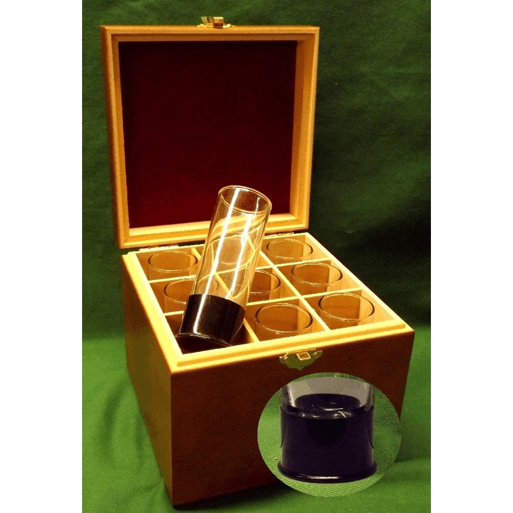 These glasses are very elegant and a little different from our stand range of shot glasses. Each carry a 2oz/6cl glass and all types of glasses are available in a set of 9 in a walnut coloured box.