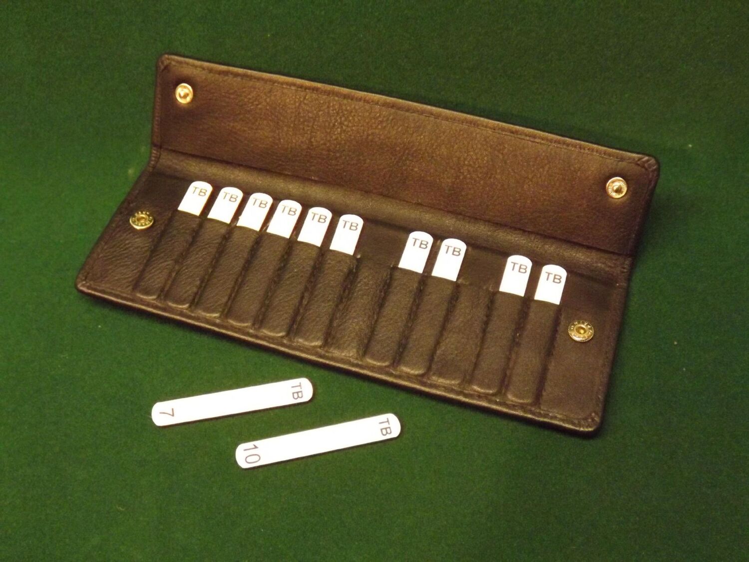 White wipe clean peg finders, Numbered 1-12 in a real leather wallet