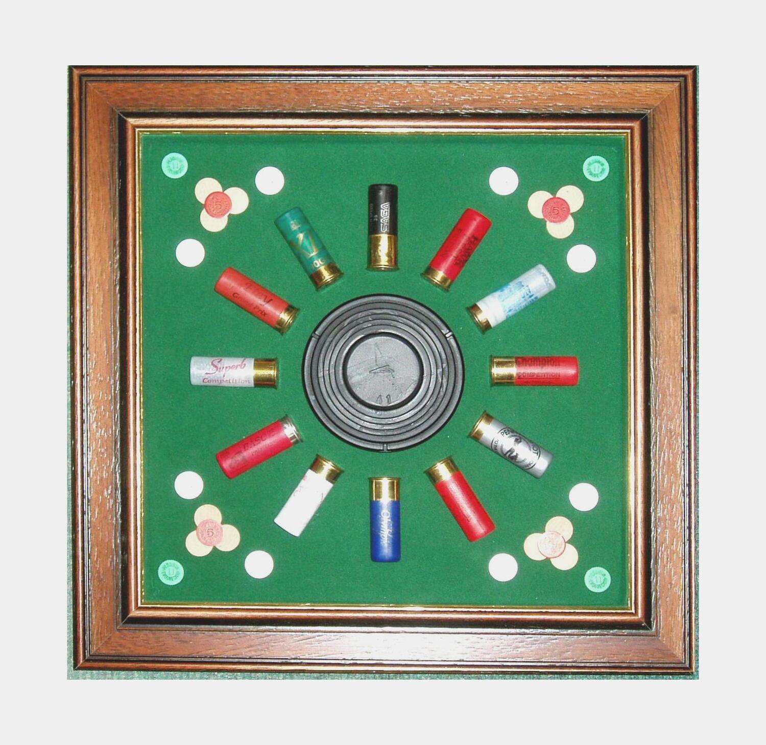 Plastic cases display containing 12g deactivated cartridges, housed in an attractive 50mm antique frame on green baize background and containing over shot cards. Size - 330 x 330mm (glass size)