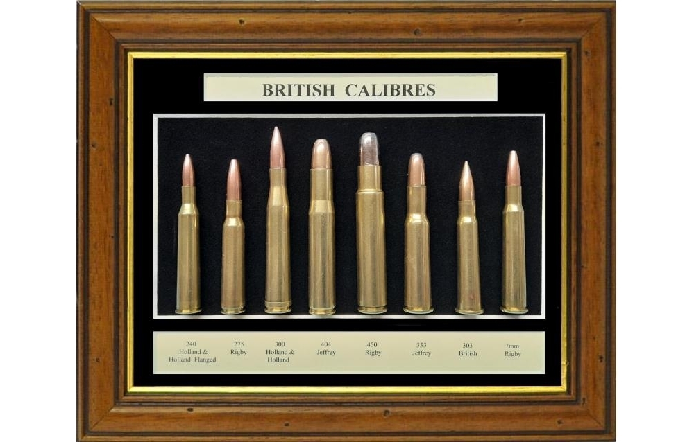 containing rounds devised by British gun makers. 240 H&H, .275 Rigby, 300 H&H, 404 Jeffery, 450 Rigby, 333 Jeffery, 303& 6mm Rigby.